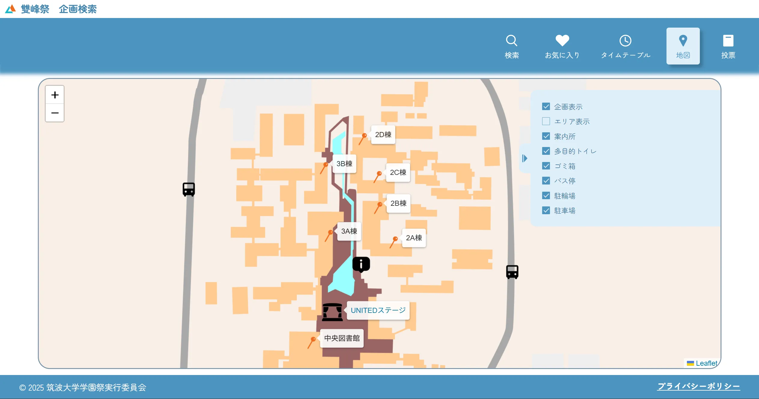 次に解説するのは、雙峰祭企画検索システムです。今年は昨年度より大幅に機能が追加され、お気に入り機能、投票機能、地図機能などが追加されました。これにより、フロントエンドもかなり複雑なものになりました。私は全体の設計・ライブラリ選定を担当し、実装の大部分は他の二年生が担当しました。